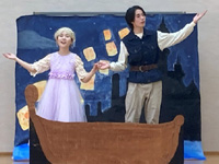 続いて、津上ゼミによるオペレッタ「ラプンツェル」。「自由への扉」や「輝く未来」といったおなじみの名曲に加え、コミカルなシーンでは笑いが起こったり、ユージーンがバク宙を披露するシーンでは歓声があがったりと、たくさんの反応をいただきました。また、劇中では子どもたちに将来の夢を尋ねるシーンでは、多くの子どもたちが手を挙げて答えてくれました。