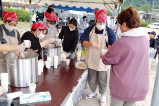 さらに、“地産地笑”をテーマに、本学食物栄養専攻の学生が地魚を使ったつみれ汁を参加者のみなさんに提供し、地元の産業を通じて笑顔の輪を広げることができました。