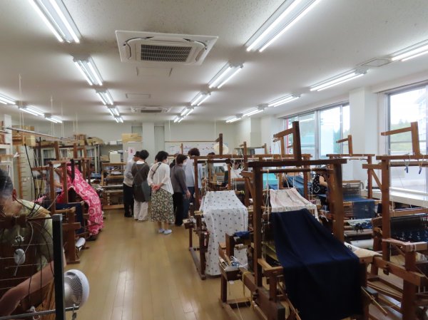 昼食後、絣美術館・絣研究室を見学されました。研究生が実際に織っている姿や絣作品を見られ、「研究生のみなさんはスムーズに織っておられたが、1本の糸から長い年月をかけて作り上げてすごい!」と感心されていました。