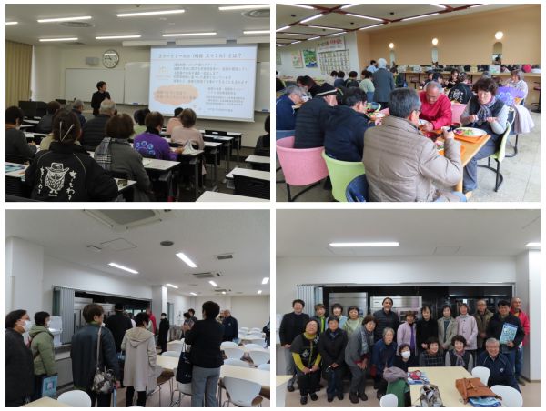 はじめに、鳥取短期大学 生活学科食物栄養専攻の野津あきこ先生による「今日からできる健康ごはん~スマートミール認証の食事とともに~」と題した講話を聴き、健康寿命を延ばすポイントやスマートミールについて学びました。