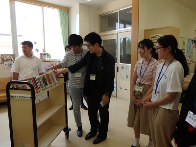 令和元年6月21日(金)、国際文化交流学科の専門科目「学校図書館概論」を受講する2年生8名が河北中学校の学校図書館を見学しました。