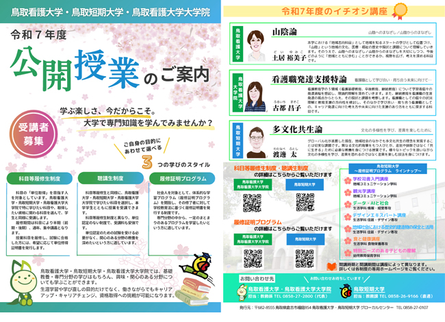 短期大学で特に学びたいもの、あるいは取得したい資格に関わる科目を選んで、一般の学生と同様に受講する制度です。