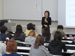 講師に、佐藤敬子先生(ナラティブコミュニケーション教育研究所所長)をお招きし、『「聴く」力は「育てる力」~輝く感性を引き出し、育み、磨くために~』と題し、ご講演いただきました。参加者は、ファシリテーターの役目や効果的な質問で積極的に「聴く」ためのポイント等についてペアワークを交えながら学びました。