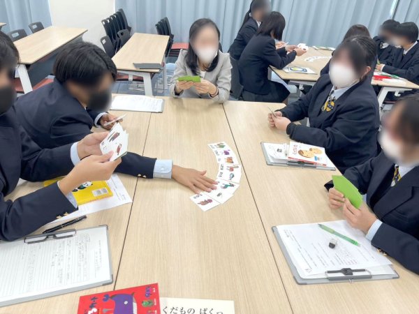 ・幼児教育保育学科の模擬授業でエプロンシアターや紙芝居などを実演してもらい、どのような学習ができるか理解できました。絵本の読み聞かせをやってみて、改めて保育士や幼稚園教諭がやっていることが難しいことなのだとわかりました。久しぶりにしりとりカードゲームのような遊びができてよかったです。ぼくは鳥取短期大学も進学先の候補なので、模擬授業を受けることができてよかったです。